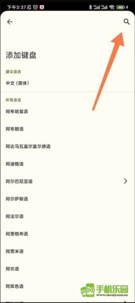 3、进入添加键盘界面先点击右上角的搜索按钮