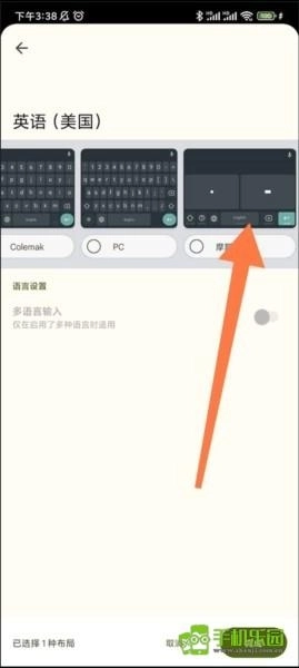 1、首先进入Gboard后点击最上面的语言。