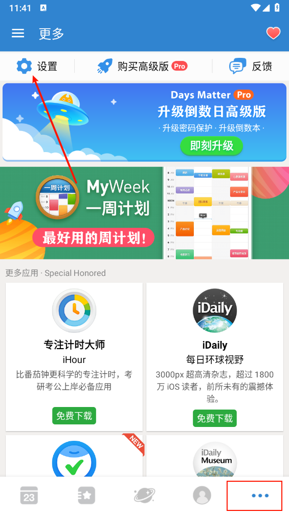 1、打开软件,在"更多"板块,点击"设置"进入。