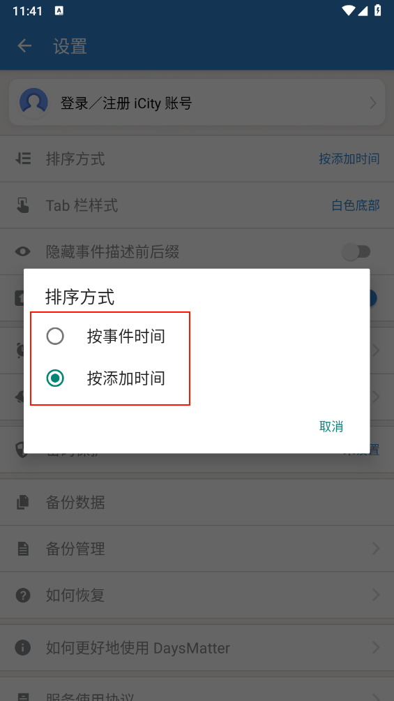 4、设有纪念日、工作、生活三种默认分类,同时支持用户自定义添加更多分类。