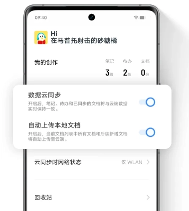 1. 在原子笔记中点击底部的“我的”,开启“数据云同步”功能后,你后续的笔记就会自动同步到云端。