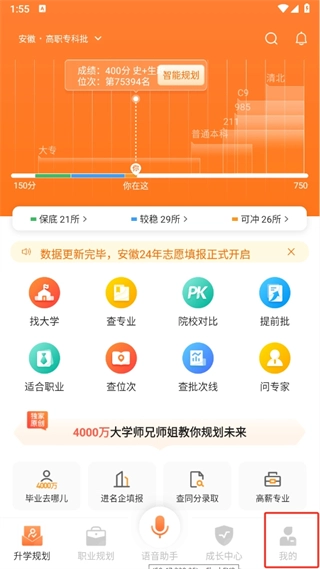- 志愿表诊断服务:从四大维度对志愿表进行科学评估,为你量身打造专家级的志愿填报方案。