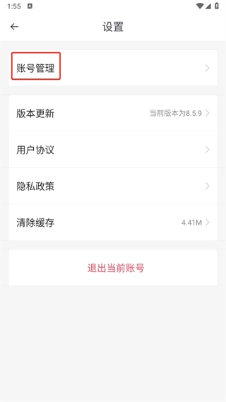 4、接着进入设置界面,找到并点击【账号管理】这一选项。
