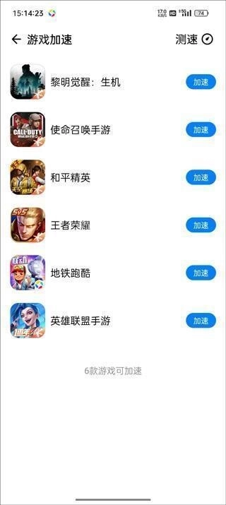 3、选择自己需要加速的游戏点击右侧的加速即可