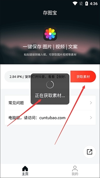 3、点击获取素材,然后等待数秒获取素材;