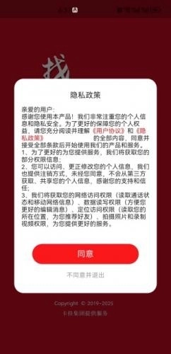 1、启动软件后,请先仔细阅读隐私政策的相关内容,点击同意按钮就能进入登录界面。
