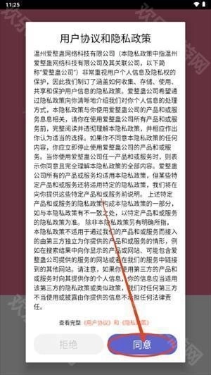2、打开软件,点击同意用户协议和隐私政策