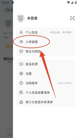 3、接下来大家就可以看到“小号管理”,点击。