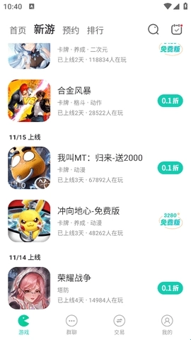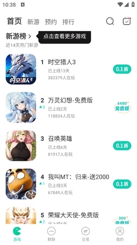 1、首页区域会展示近期的热门新游,这些都是上线不久且人气较高的游戏。