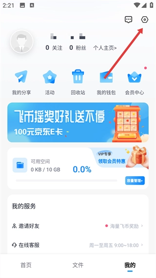 1、进入“我的”页面后,点击右上角的“设置”按钮,即可进入设置界面。