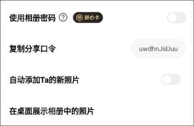 4、最后就能找到相册密码功能,点击其右侧按钮就能开启。不过需要提醒小伙伴们的是,开启这个功能得先开通随心卡才行~