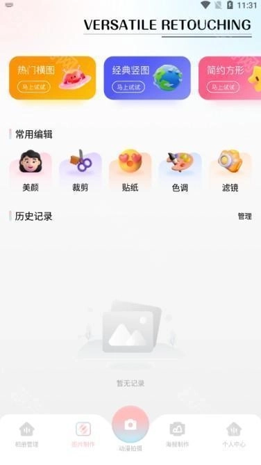 3、这里提供了多样化的相册剪辑功能,同时还支持免费的拍照美颜服务