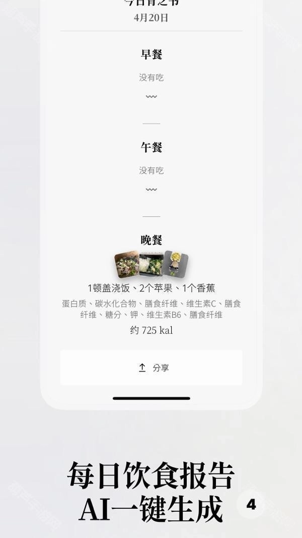 3、记录你一日三餐的饮食内容,并结合你的具体情况给出专业的营养分析,助你轻松实现健康饮食。