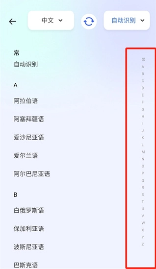 4、点击页面顶部的语言选项,就能便捷切换翻译的语言类型。