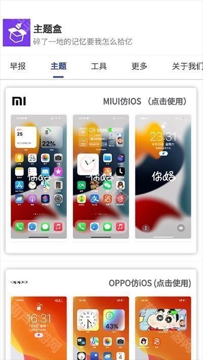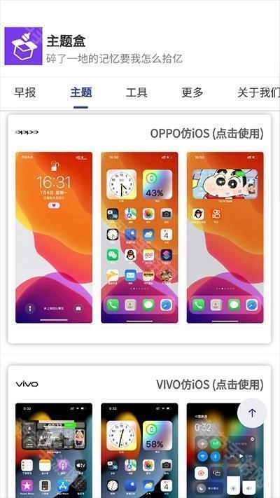 1、首先打开主题盒,在首页就能看到不少可使用的仿ios风格手机主题。