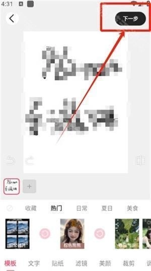 图片选定后,编辑界面随即出现,用户可利用App的模板和滤镜进行个性化编辑,完成后选择右上角的继续键。