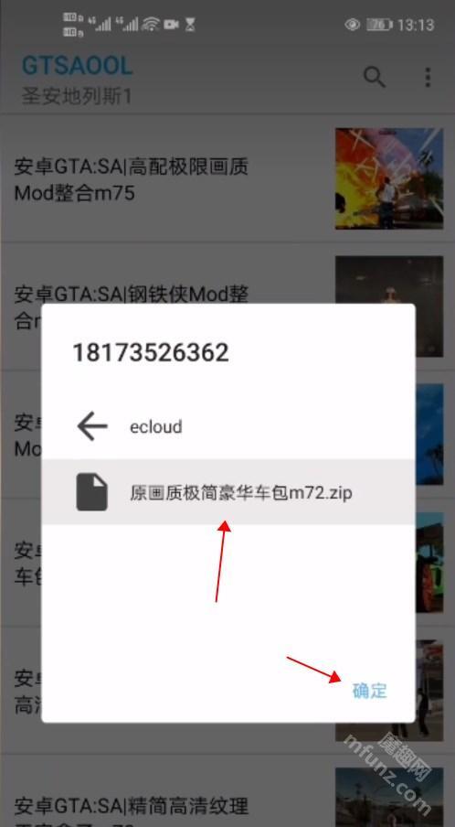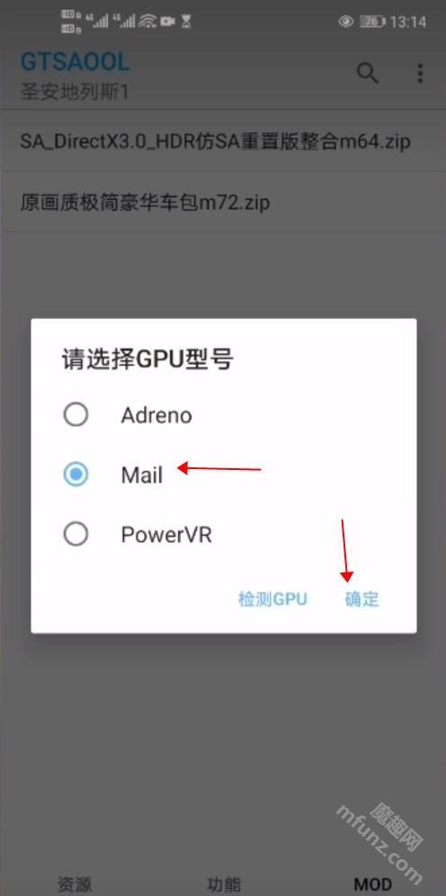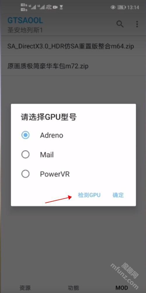 4、的MOD整合包会在这里展示,点击即可解压到游戏目录,长按可执行删除操作。解压过程中请选择与手机GPU相匹配的格式。