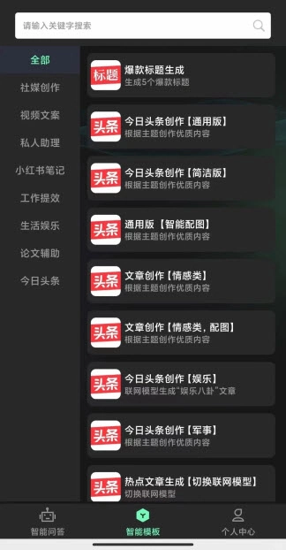 3、寻找热门话题,打开AI链接,挑选模板,复制标题后点击自动生成