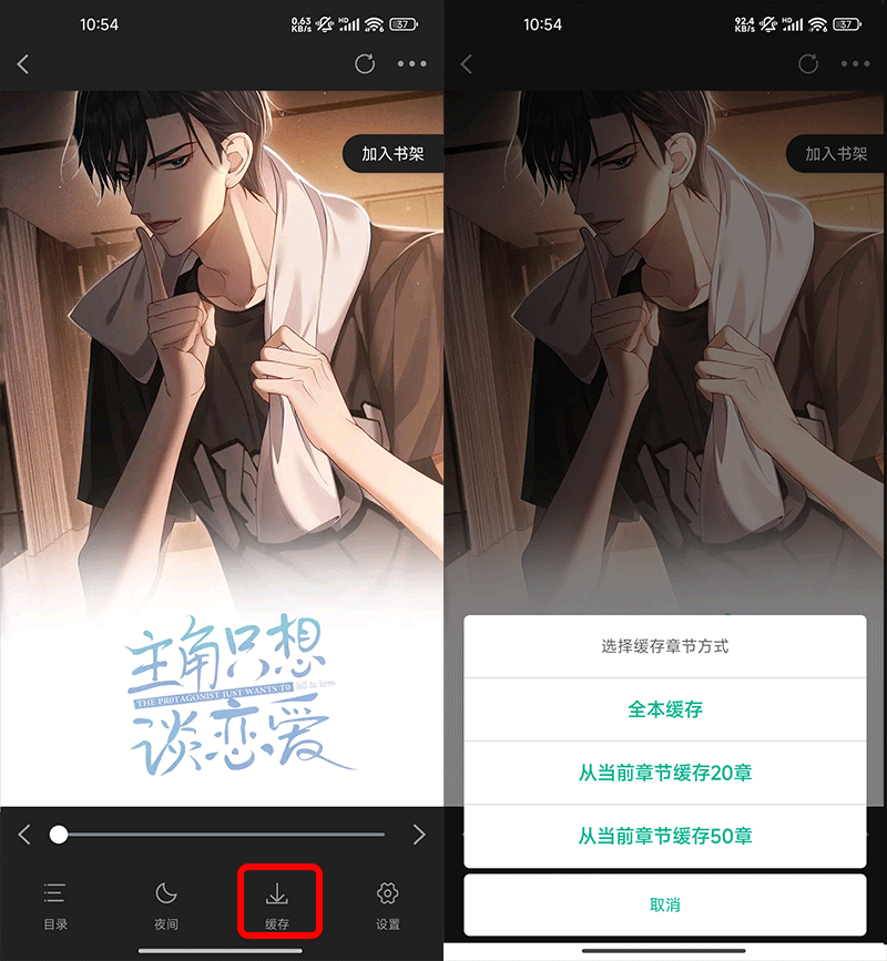 2、方式二:在看漫画时,也可以点击下方的【缓存】按钮,这样就能离线追漫了。