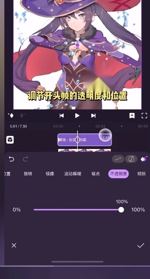 4、制作动画时,需设定开头帧的透明度与位置参数,这能让视频的开头过渡更为流畅自然