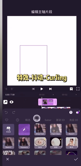 8、调节关键帧后就可以长按视频进行特效添加