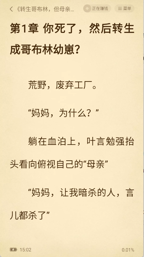 1、打开小说进入阅读界面后,轻点屏幕任意区域即可调出菜单栏。
