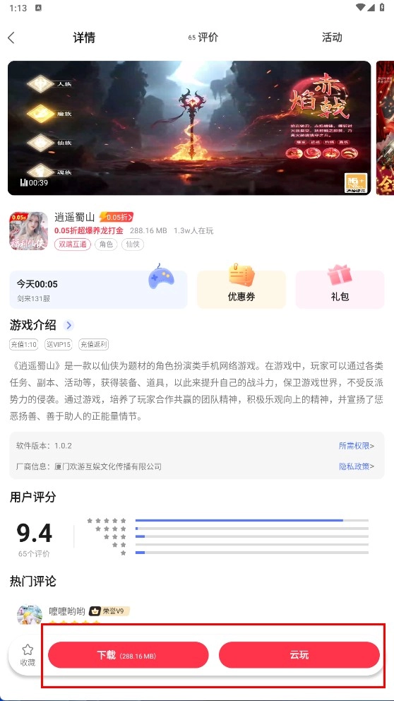 3、在游戏详情页面,你可以选择【】来安装游戏,也可以点击【云玩】按钮直接在线体验游戏。