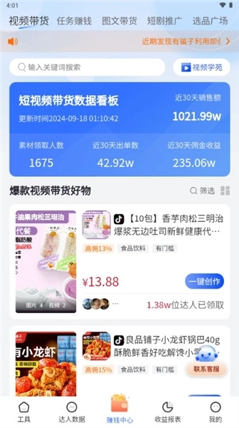 还会全面分析查看用户的账号收益数据,为用户开展短视频营销提供支持。