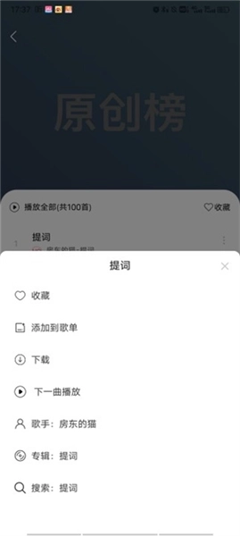 5、可播放任意艺术家的作品、专辑、播放列表,也支持随机播放模式。