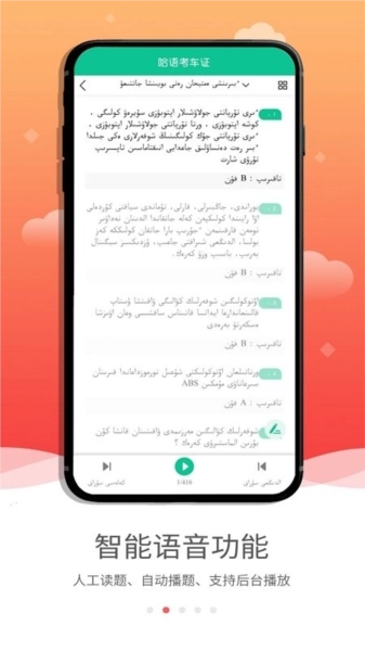 语音功能:语音驾考支持自动播放,后台听题模式可满足用户解放双眼的需求,也适合中老年群体或不识字的人士使用。
