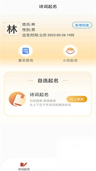 诗词起名是一款专业实用的起名软件。它能依据生辰八字,并结合诗词文学作品,为新生儿取一个好听且富有内涵的名字。用户只需输入出生信息,就能迅速获取大量起名参考,操作十分简便。此外,软件还提供起名打分、八字测算、生肖运势、重名查询等多种实用工具,让用户可根据自身需求与喜好,享受到贴心的服务。