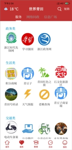 4、便民查询,用户可以在这里一键了解青田的天气,违章查询,政策查询等;