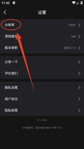 3、接着在设置中点击“分辨率”。