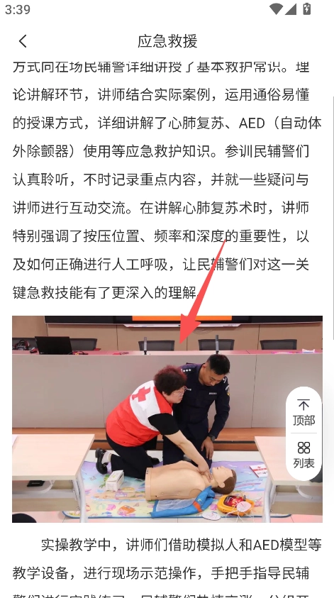 2、应急救援内容包含实操培训的介绍,并且搭配了相应配图,信息呈现直观易懂,有助于义警学习专业技能。