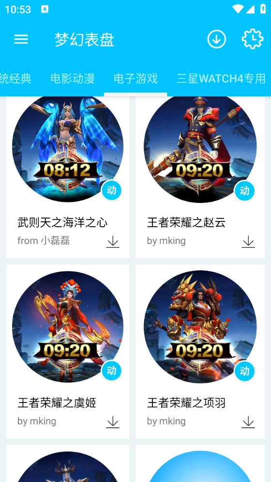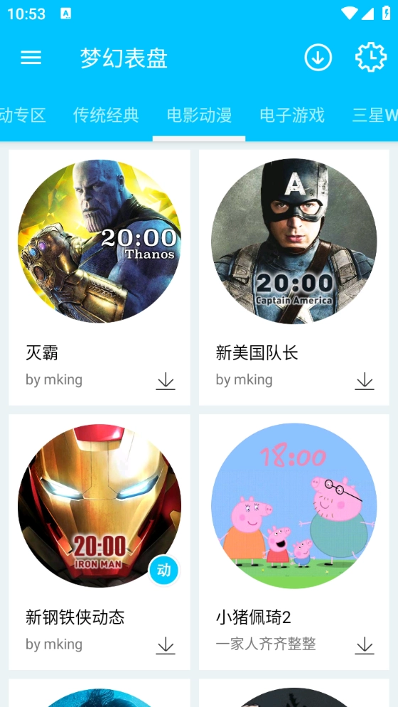 2、丰富的表盘样式分类,涵盖传统经典、电影动漫、电子游戏等多种类型。