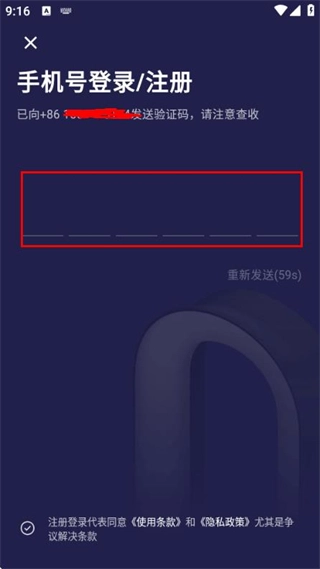 4、在验证码输入框内填入收到的验证码,点击登录按钮以完成账号登录流程。