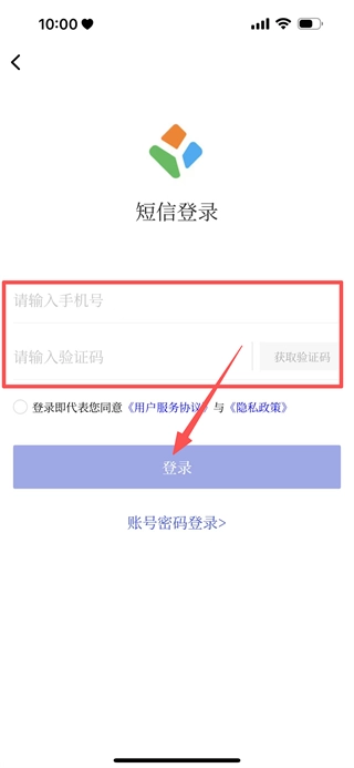 4、在短信登录界面,输入手机号与验证码,点击登录按钮,即可完成账号登录操作。