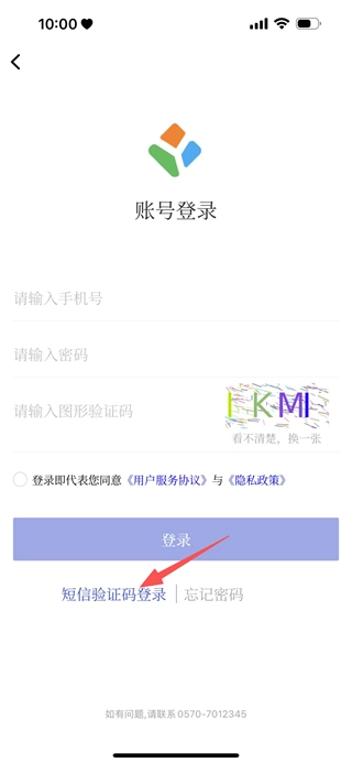 3、进入账号登录页面后,找到并点击短信验证码登录的选项,即可切换至短信登录的页面。