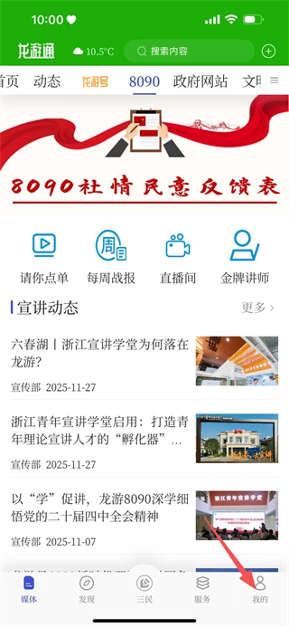 1、在龙游通首页,点击底部我的,进入个人页面。
