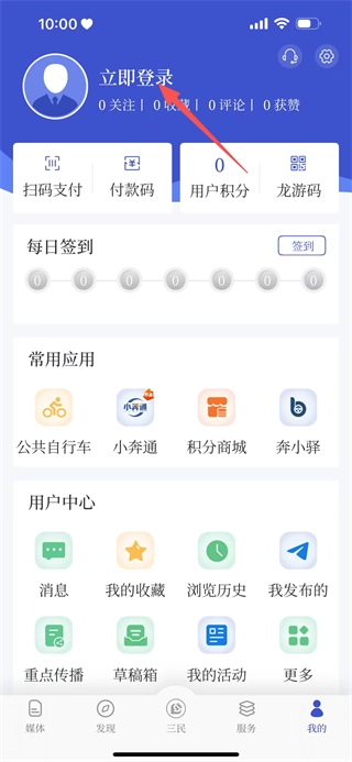在个人页面,点击“立即登录”区域,即可进入账号登录页面。