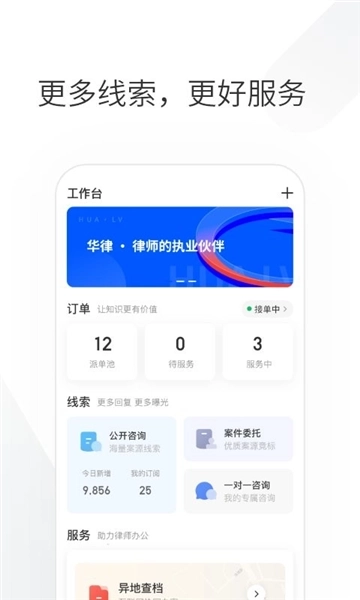 这款软件专注于构建高效便捷的工作场景,助力律师不受时空限制地处理用户的法律需求。不管是在线回应咨询,还是开展一对一的法律服务,都能更加轻松高效。律师可自主设置专业标签,系统便会依据这些标签匹配更多契合其专业领域的案源,从而切实提高律师的工作效率与职业成就感。
