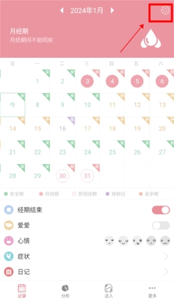 点击日历上实际的姨妈开始日期,并把“经期开始”的开关调整为开启状态。