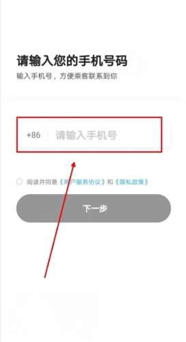 2、用户即可马上输入自己的手机号码,接着点击下一步;