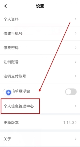 2、进入设置界面后向下滑动,找到【个人信息管理中心】选项,点击进入即可。