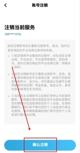 2、最后把所有内容都看清楚,确认确实需要注销的话,直接点击最下方的【确认注销】按钮就行啦。