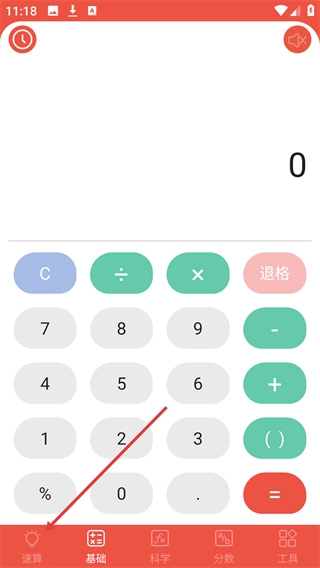 1、在计算器相关界面点击底部的【速算】选项,即可进入速算训练的设置页面,以便进行训练参数的配置准备。