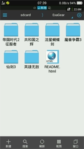 2、游戏,将游戏解压到手机内存的ExaGear目录中,若该目录不存在则自行创建。
