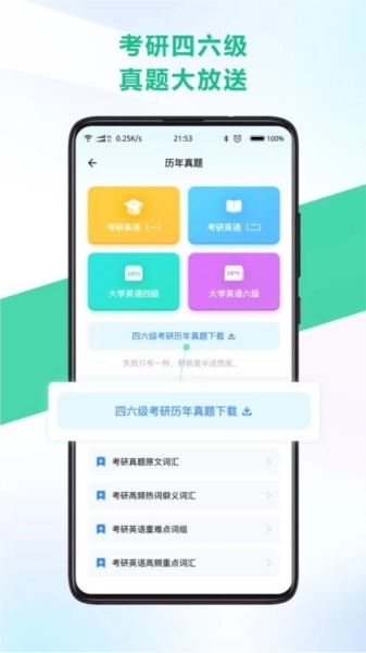 另类单词是陕西彩京云互联网科技有限公司针对英语四六级与考研打造的英语单词学习工具,能帮助用户更高效地学习英语,轻松提高考试成绩。该应用了丰富实用的功能:用户可查看历年真题并进行模拟考试,沉浸式体验真实考试的细节;软件还具备查漏补缺功能,收录海量英语单词,支持随时查询、学习与背诵,助力用户扩充词汇储备。此外,软件通过巧妙拆分单词结构,帮助用户更高效记忆单词,是学词背词的得力助手。不仅如此,另类单词免费版提供了大量四六级及考研英语真题,用户可随时刷题备考,提升考试分数。