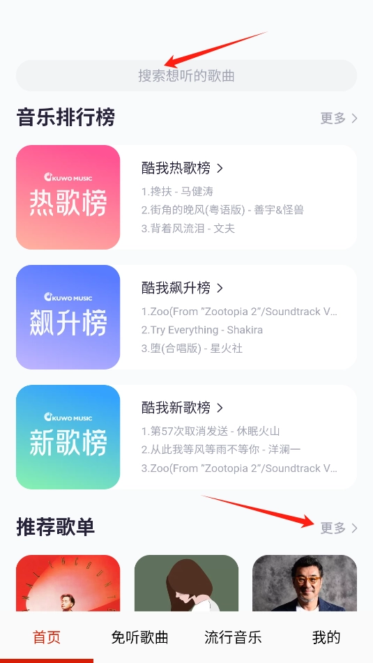 1、智能推荐机制能够精准捕捉用户的听歌偏好,为其推送专属定制歌单;同时结合飙升榜、热歌榜等热门榜单,助力用户快速发掘更多优质新歌。