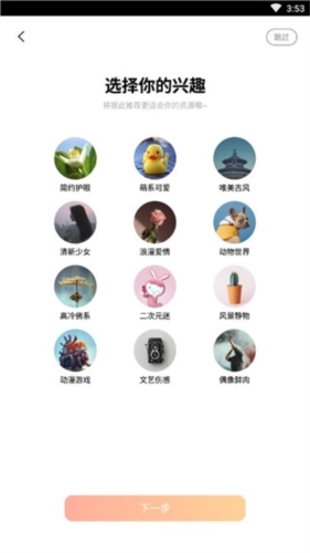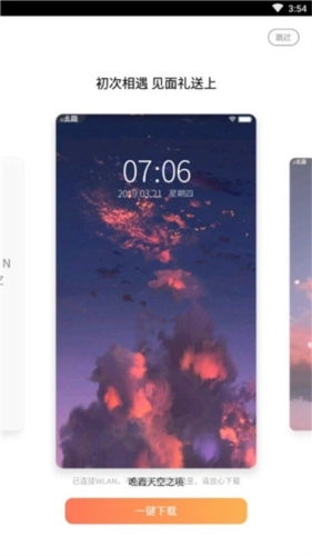 2、软件会依据你的选择自动推送几款精美的桌面,若不需要,可点击右上角的跳过按钮。